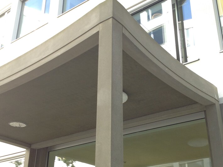 Eine weitere Herausforderung war die geschwungene Ausbildung diverser Eingangs.-und Vordachelemente.