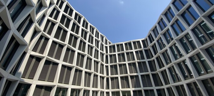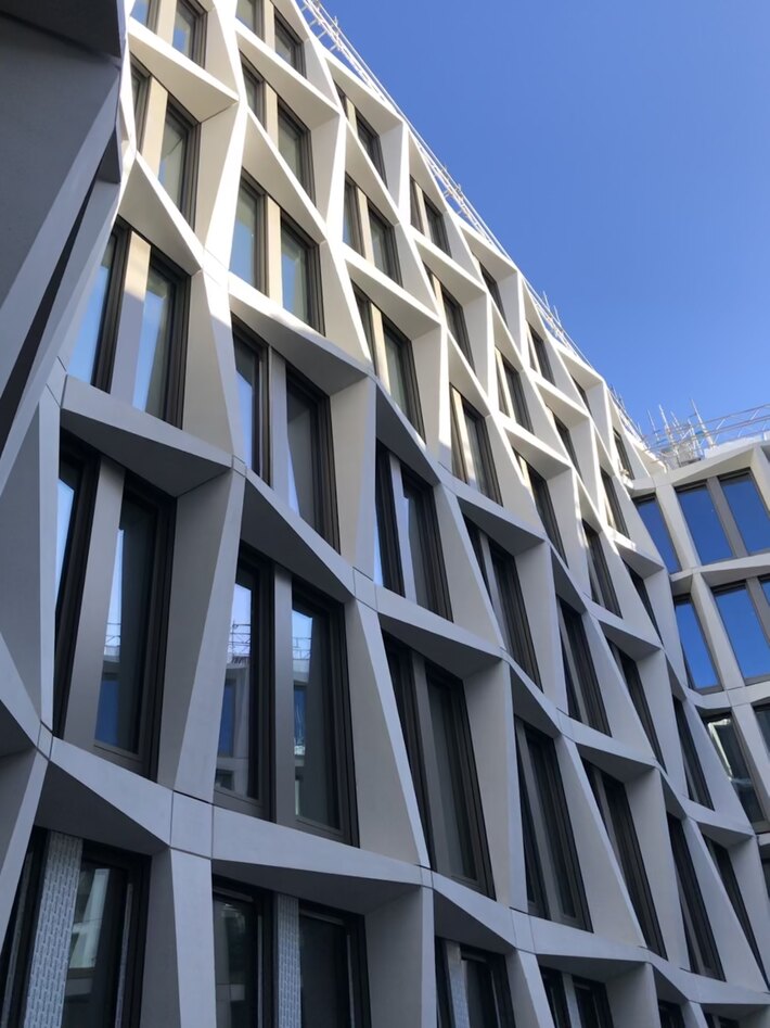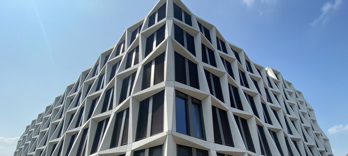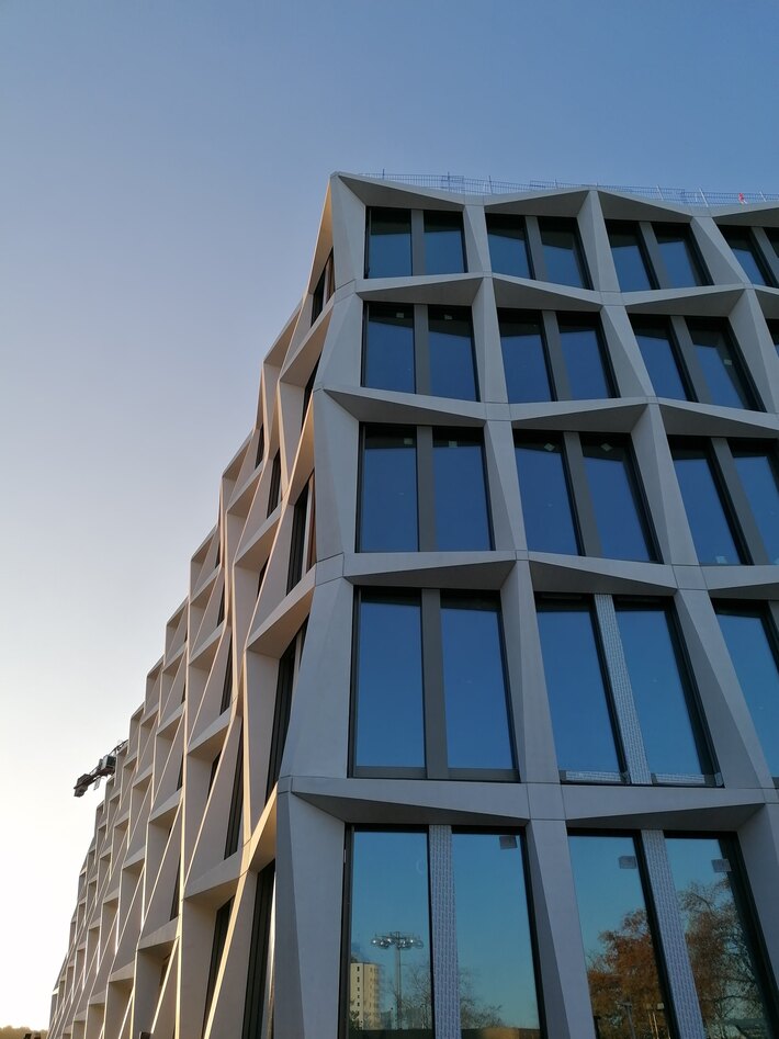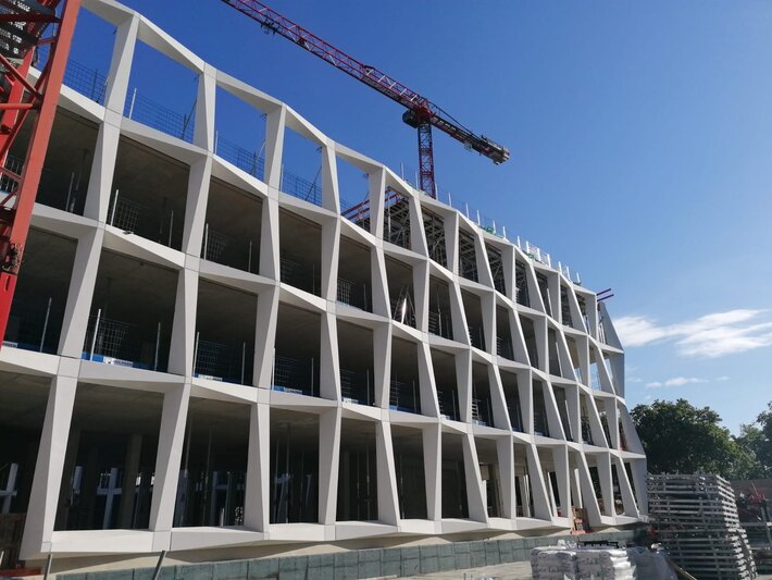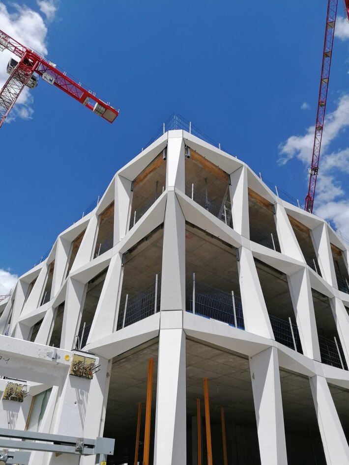 - ca. 1.076 tragende, gestalterische Elemente aus eingefärbtem, weißen Architekturbeton.