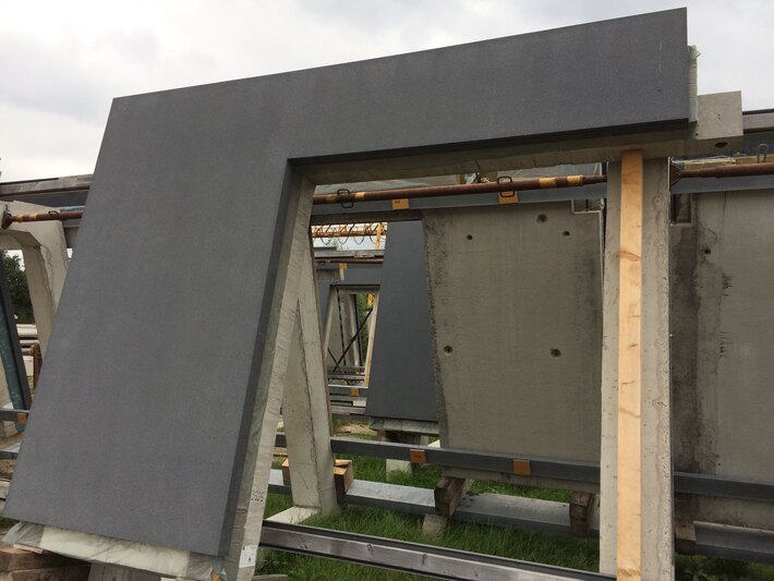 - ca. 600 Stück tragende Wandplatten, im Außenbereich als Sandwichkonstruktion.