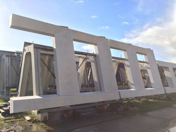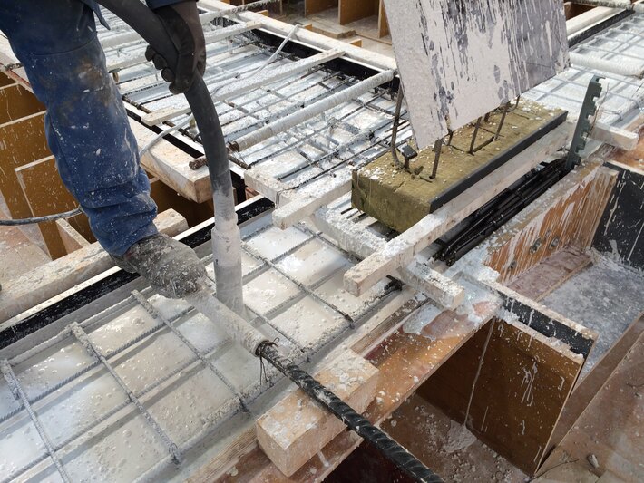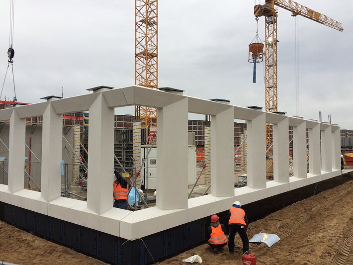 - Aufwendig gestaltete Architekturbetonelemente als tragende Stützen / Wandkonstruktion mit Scheinfugen